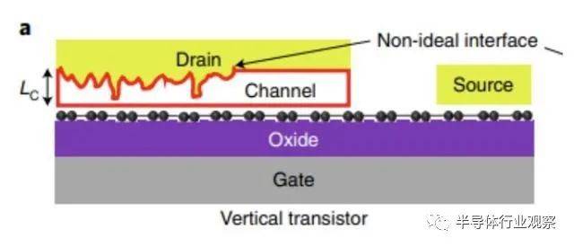 更重要的是,這種垂直場效應(yīng)晶體管不是平行排列的,是垂直排列的。這種縱向的結(jié)構(gòu)具有天然的短溝道特性,半導(dǎo)體溝道位于底電極與頂部電極之間,溝道長度僅取決于材料厚度。